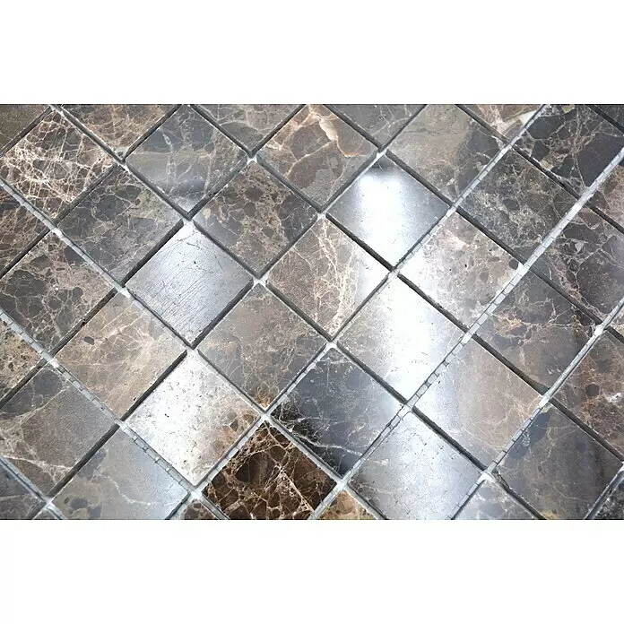 The mosaic tile square MOS made of marble creates a natural and varied atmosphere thanks to its material. Hundreds of decades as well as the tidal forces have left their mark on this material. Rivers and streams have polished it into what it is today. This makes each piece unique. The design of the mosaic allows for individual design of different areas. The natural stone mosaic is particularly suitable for setting accents.Area of use: The mosaic tile is used in the living area, in the kitchen and in the bathroom and is usually laid as a decorative element between tiles. It can be used on the wall as well as on the floor. In addition, the tile can be used outdoors without hesitation thanks to its frost protection.Advantages of mosaic tiles:Easy to care for: Since mosaic tiles made of natural stone are very robust, they are very easy to care for and clean. In most cases, the tiles can be cleaned with warm water as they are dirt-repellent.Frost-resistant: Due to the low water absorption of the tile, it is frost-proof if laid correctly.Suitable for showers: Due to the material properties, the mosaic tile is well suited for use in showers.Abrasion group 4: The tile is suitable for areas with heavy use. This includes floor coverings in kitchens, hallways, living rooms, offices or terraces.Laying the mosaic tiles:Mosaic tiles are laid like conventional tiles using a tile adhesive. This is applied to the previously primed wall or floor surface. The mosaic can then be pressed on and aligned. To fit perfectly into the desired area, the mosaic tiles can be cut to size with a cutter knife on the mesh-bonded back. After the tiles have been installed, they should still be grouted. Due to the materials and for a better appearance, a white adhesive should be used here.