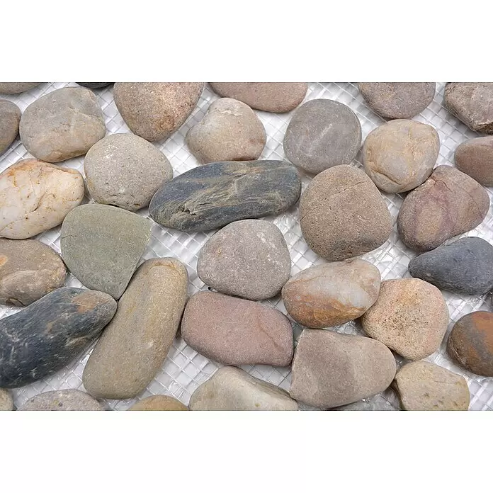 Mosaic tile made of matt natural stoneOptimal decorative element for indoor and outdoor useCan be used in the living area, kitchen and showerInstallation is carried out using a white tile adhesiveMesh-bonded back enables easy cutting Read more